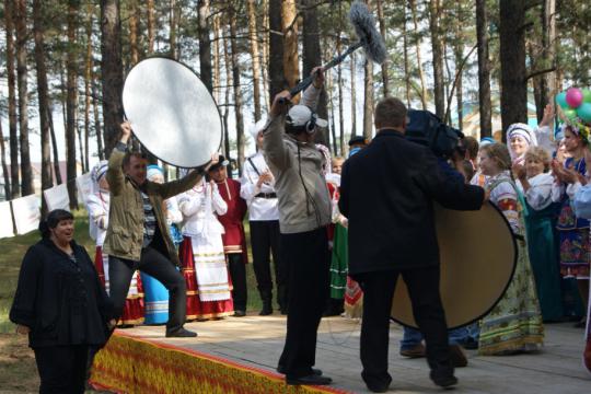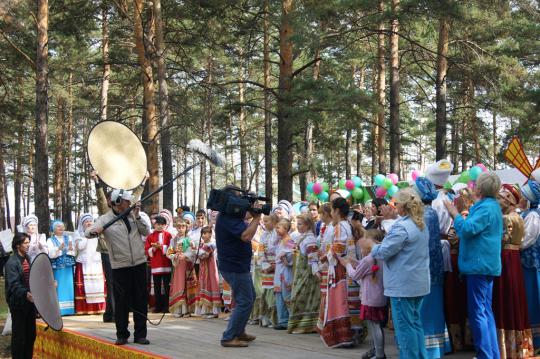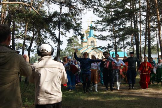 Съемочная группа Первого канала работает с Образцовым фольклорным ансамблем «Белореченька».