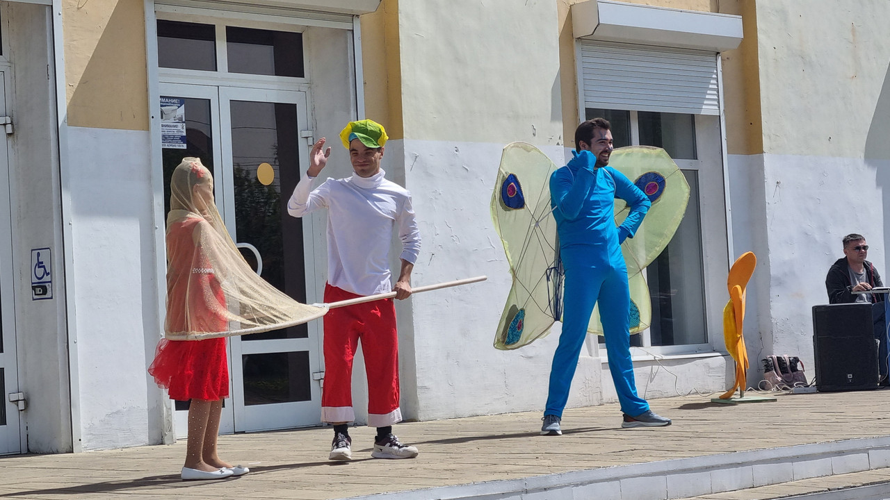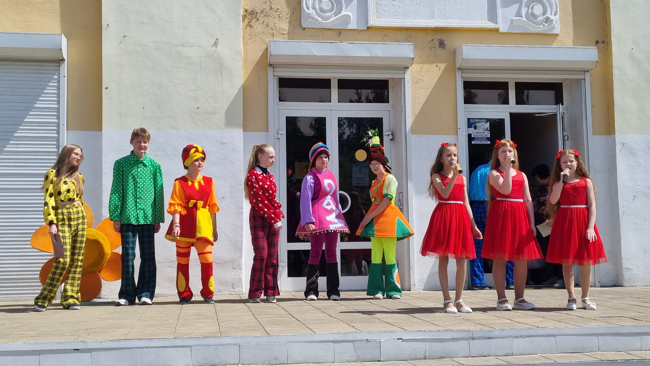 На площадке сквера Мира прошла театрализованная игровая программа "Пусть лето звонкое смеется".
