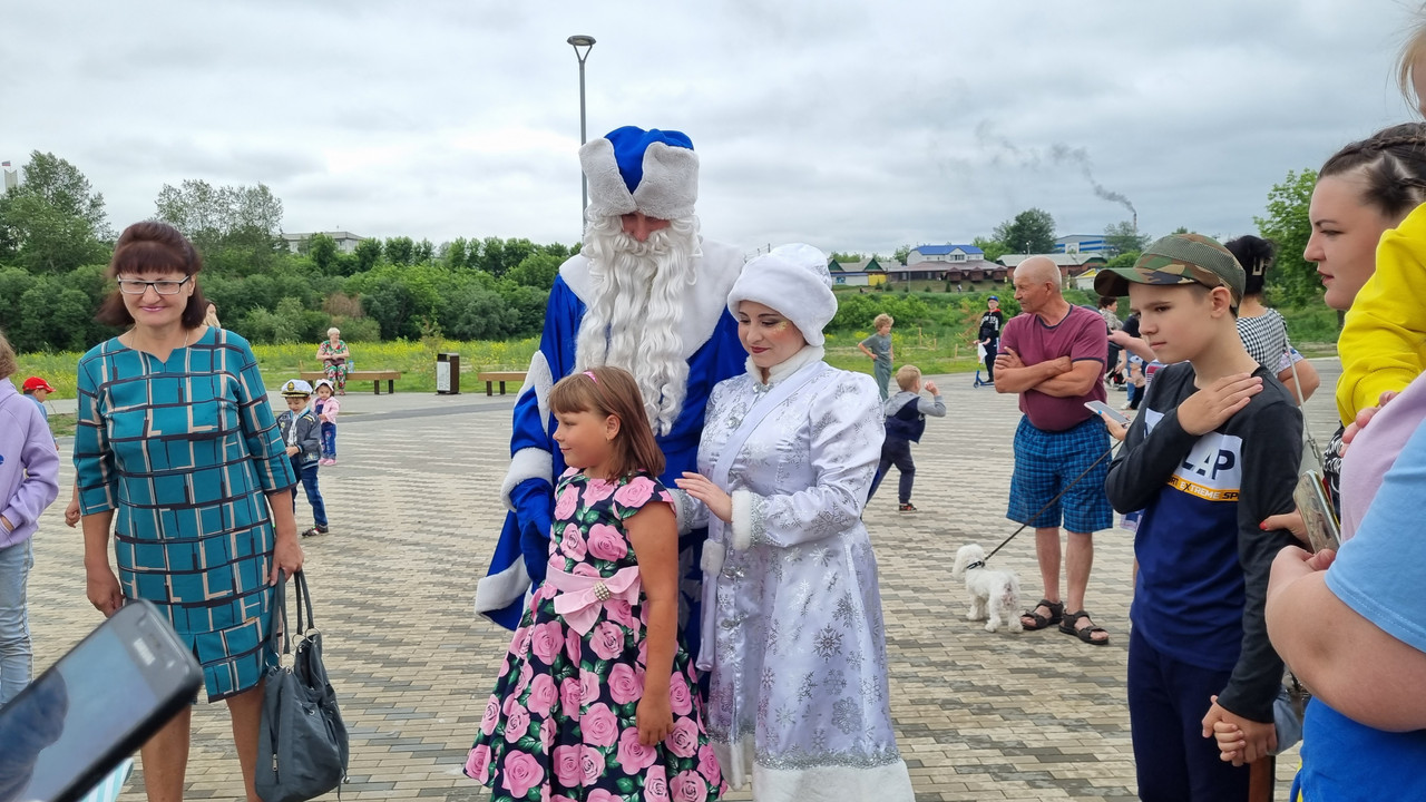Гостей праздника встречали байкерские Дед Мороз и Снегурочка